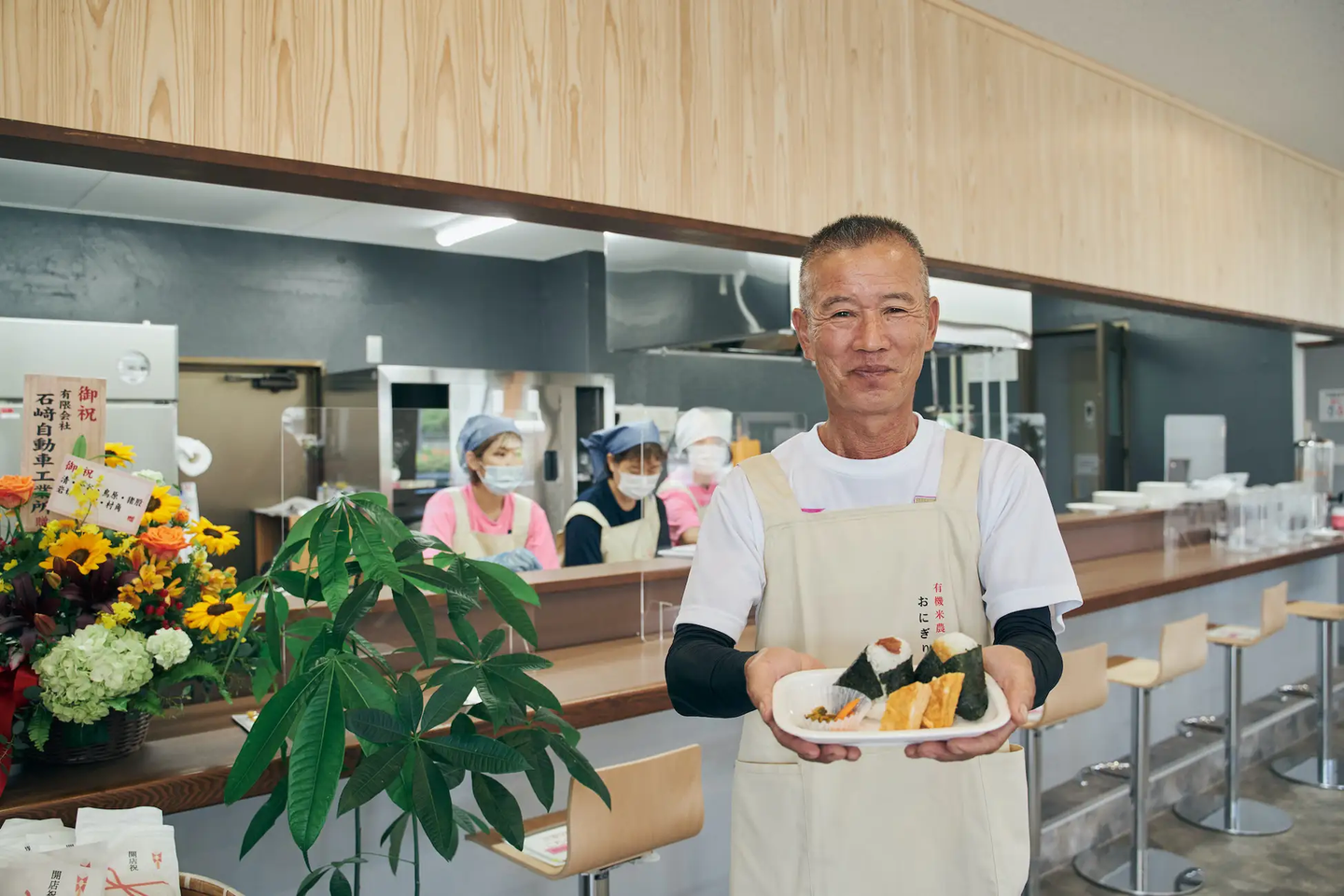 「有機米を味わって、有機栽培をもっと知ってほしい」と、宮本さんは2021年6月に新富町内のチャレンジショップを活用して『おにぎり宮本』をオープンしました。こだわりの有機米を炊き方からこだわり、具材やおかずには町内産品を使用。2年目となる現在では町内外にファンが増えています。