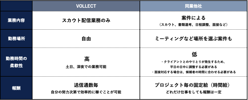 一方で、VOLLECTさんは、スカウト配信する候補者の抽出と、スカウト配信業務に限定されているので、本業への影響が出ない点も魅力かと思いますね。