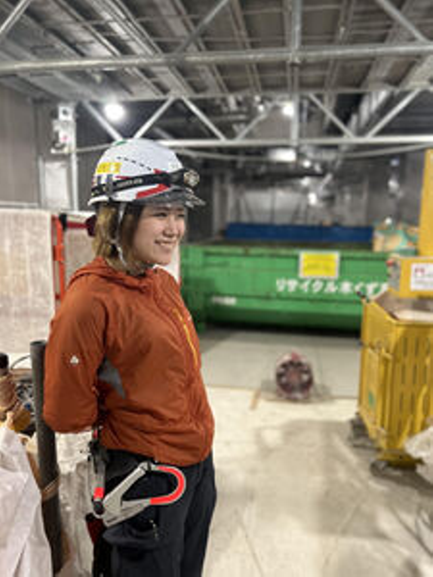 現在は、東京都心の高層ビルの新築工事現場で排出される、産業廃棄物の管理業務全般に携わっています。例えばガラスを搬入する際には、ガラスを梱包していた保護剤や束ねていたバンドなど、さまざまな産業廃棄物が排出されます。そうした廃棄物を、持ち込んだ業者に対して分別指導するのが、業務の一つです。また、あらゆる業者が廃棄物を一気に持ち込まれると置き場がなくなるため、各業者に持ち込む時間を知らせたり、搬出業者に回収できる時間を伝えたりと、連絡調整をするのも大事な仕事です。