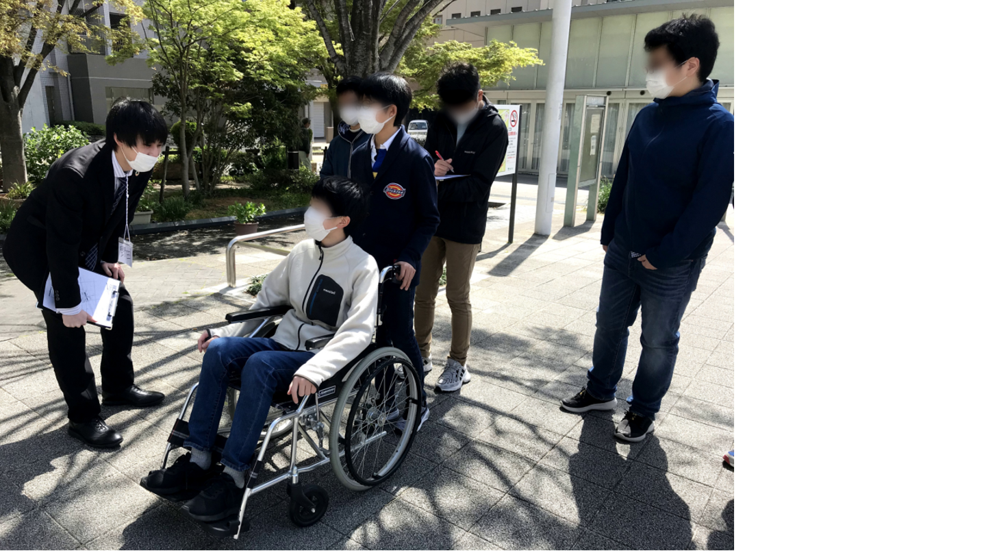 車椅子利用者の講演を聞き、車椅子利用者の目線を体験することで普段は気にもしない段差や道路の傾きを発見し、学びにしてくれました。
