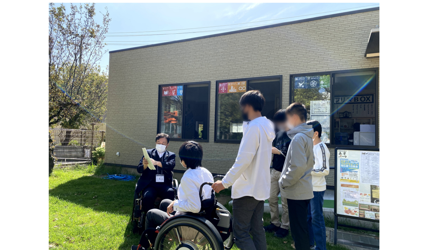 「中学生だからできる!プロジェクト」は2020年から開催している地域の中学校と連携した車椅子生活の体験型フィールドワークです。2020年は神戸市立渚中学校で開催し、2021年の第一回目は私立灘中学校にて開催いたしました。