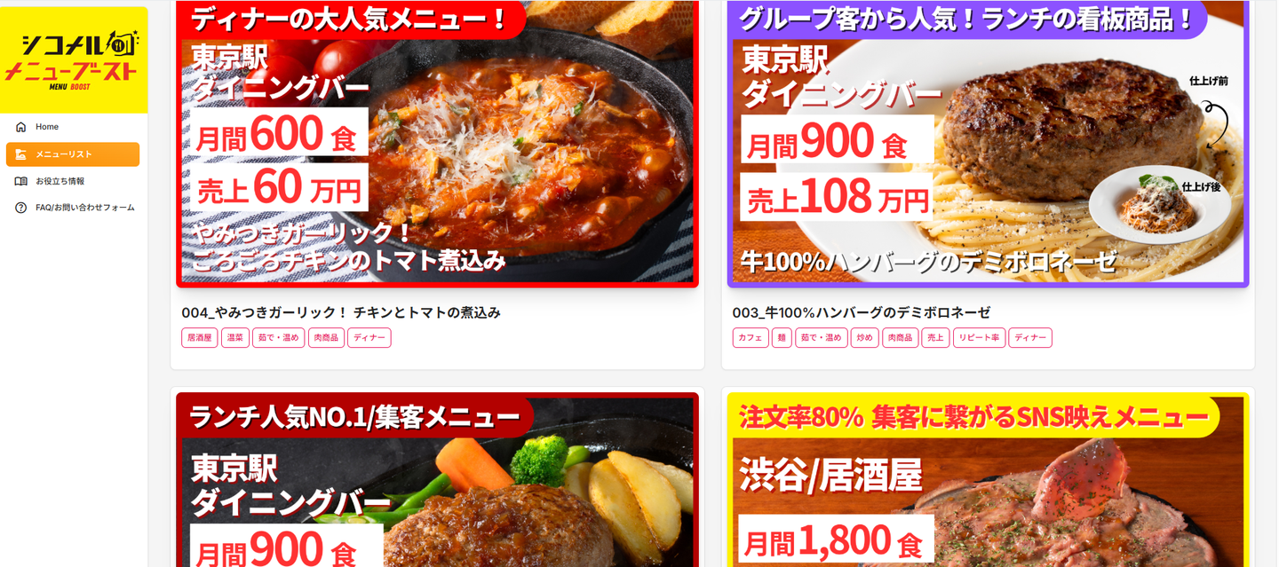 「シコメルメニューブースト」は、「売れるメニューの開発と、売るためのノウハウ」をパッケージで提供することで、飲食店のブランド力向上と持続的な成長を支援していきます。