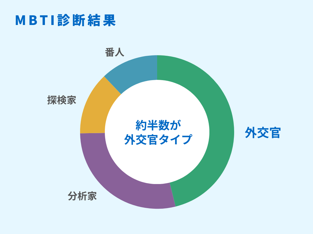 16の性格タイプを大きく4分類すると、圧倒的に外交官タイプが多い結果となりました。