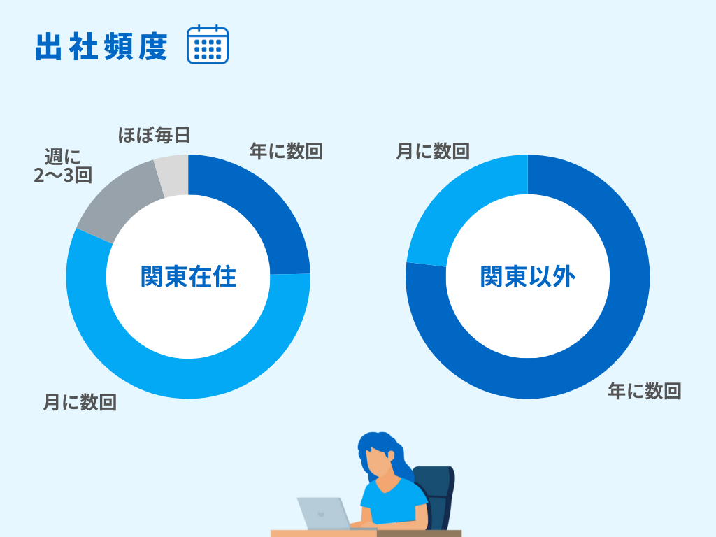 関東圏在住のメンバーは、ほぼ毎日出社しているメンバーが多いと予想していましたが、半数以上が月に数回の出社なのは驚きでした。