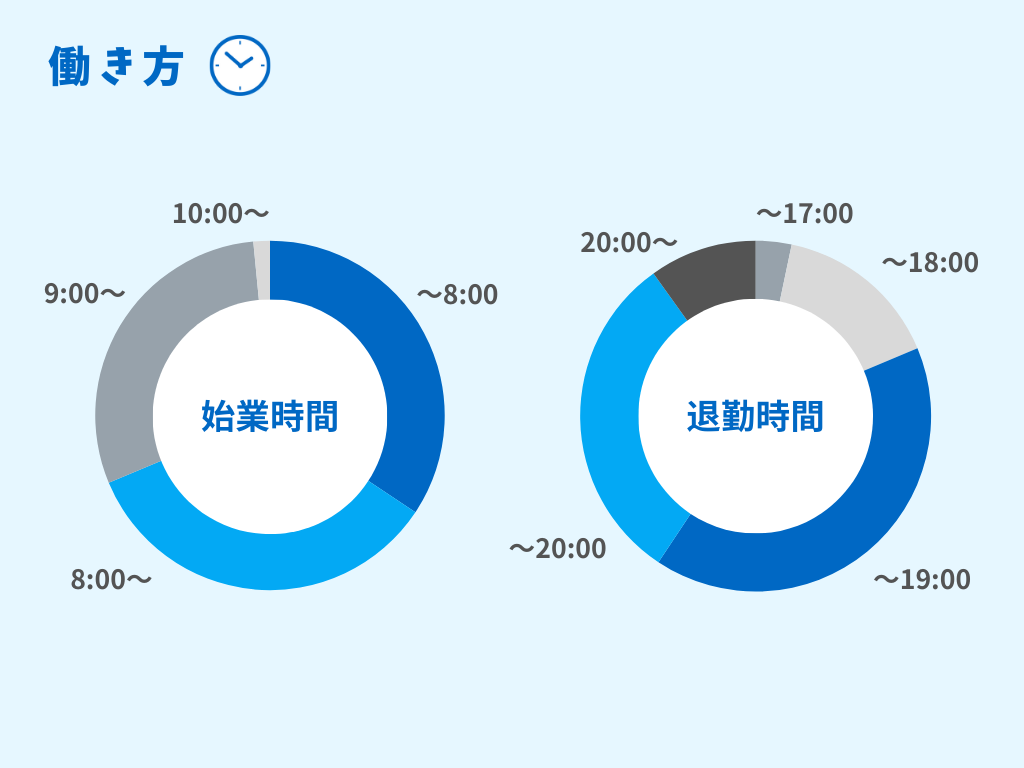 業務を早い時間に始めて早い時間に終わらせる人が多い印象です。