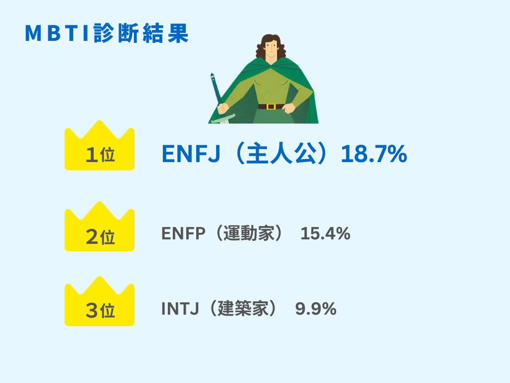 16の性格タイプ別では、ENFJ (主人公)が最多でした。