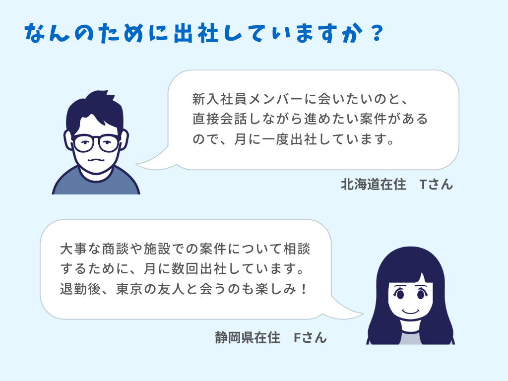 「出社し、リアルコミュニケーションを楽しみながら業務に取り組む人」