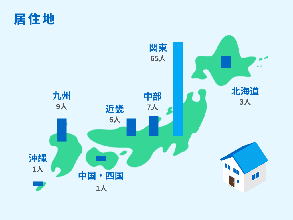 本社は東京なので、関東圏に住んでいる人が多いですが、関東圏以外に住んでいるメンバーも全体の1/4ほどいます!北は北海道から南は沖縄まで居住地はさまざまです。