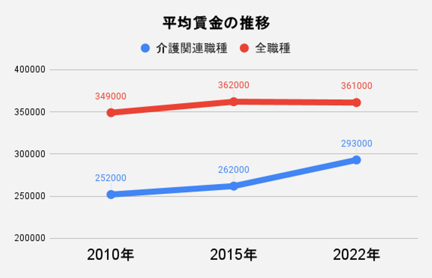 介護施設において、大きな悩みの1つが人材不足です。介護関係の有効求人倍率は、他の仕事と比較しても高く、恒常的な人材難にあるといえます。その原因の1つが給与の低さです。全産業平均と比較しても、令和4年度時点で約7万円の差があり、「やりがい」「社会的貢献度の高さ」だけでは、集まりにくい構造となっています。