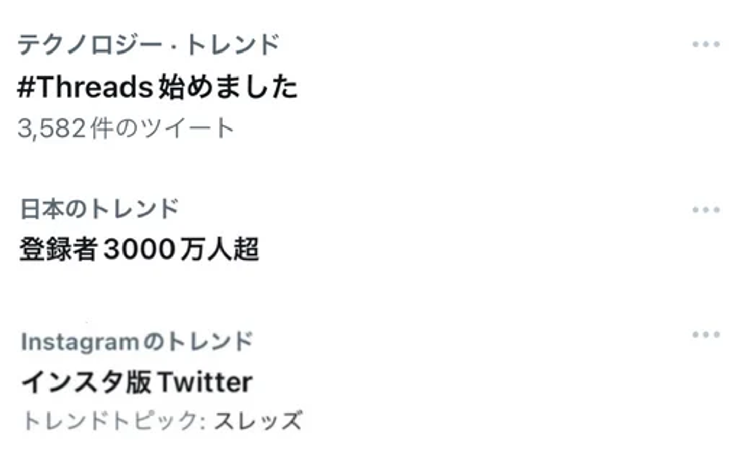 「Threads」は、「インスタ版のTwitter」とも称されるほど、機能的に類似しています。 現在はローンチ直後のため、様々な属性のユーザーが集まっていますが、1〜2週間経つ頃にはユーザーの棲み分けが自然と形成されることが予想されています。