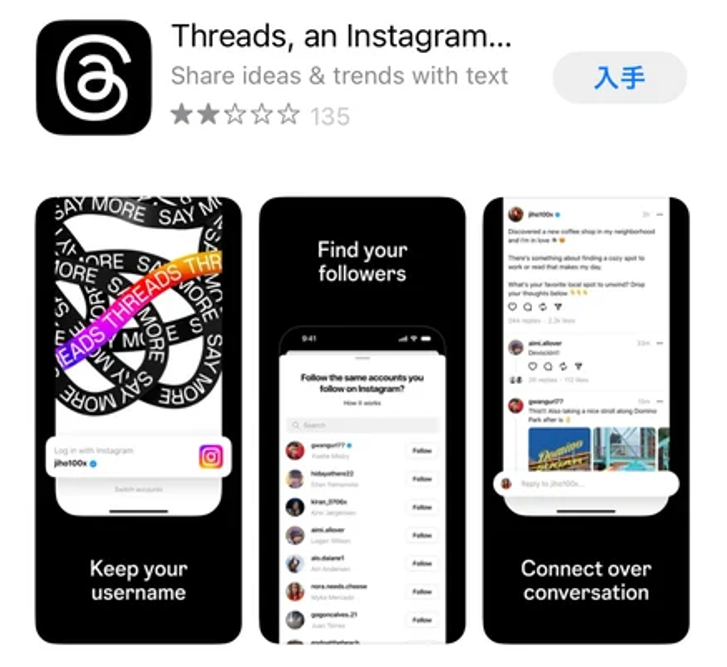 「Threads」・・・Instagram利用ユーザーによるリアルアカウント