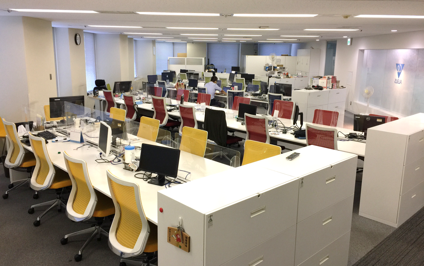 ワークスペースのデスクは一部を除きフリーアドレスです。