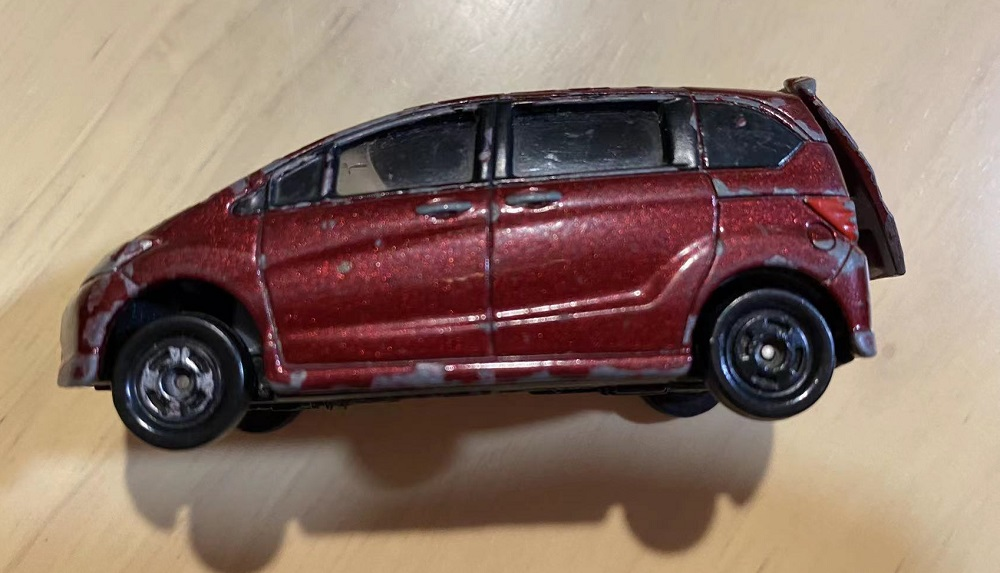 ちなみに、市販のトミカはこんな感じ。(ボロボロです)