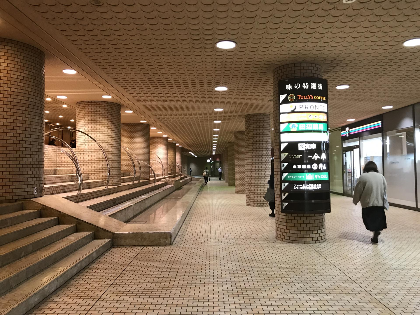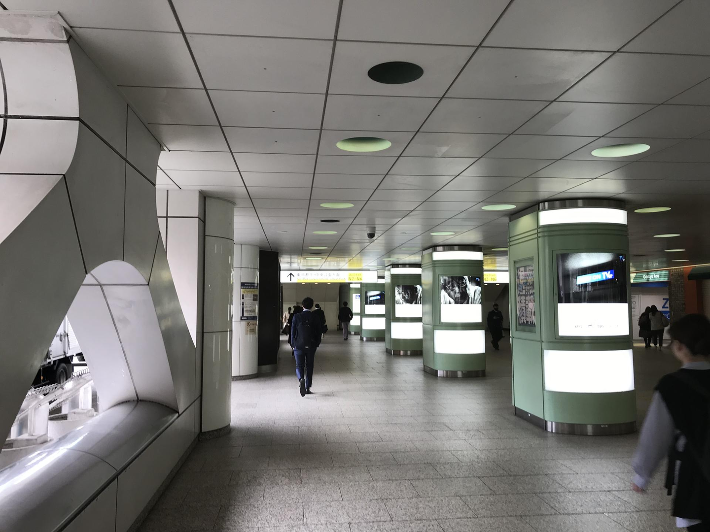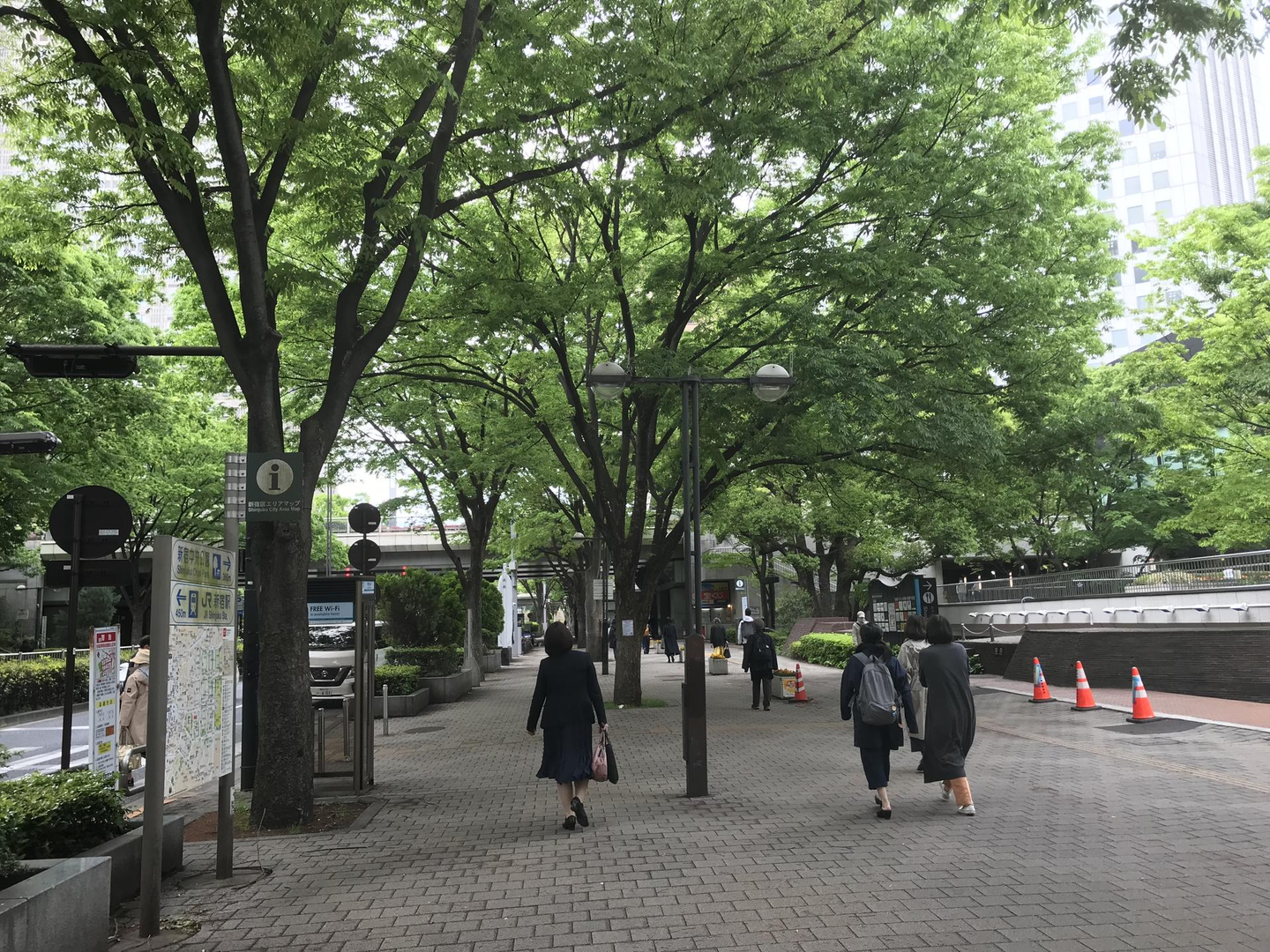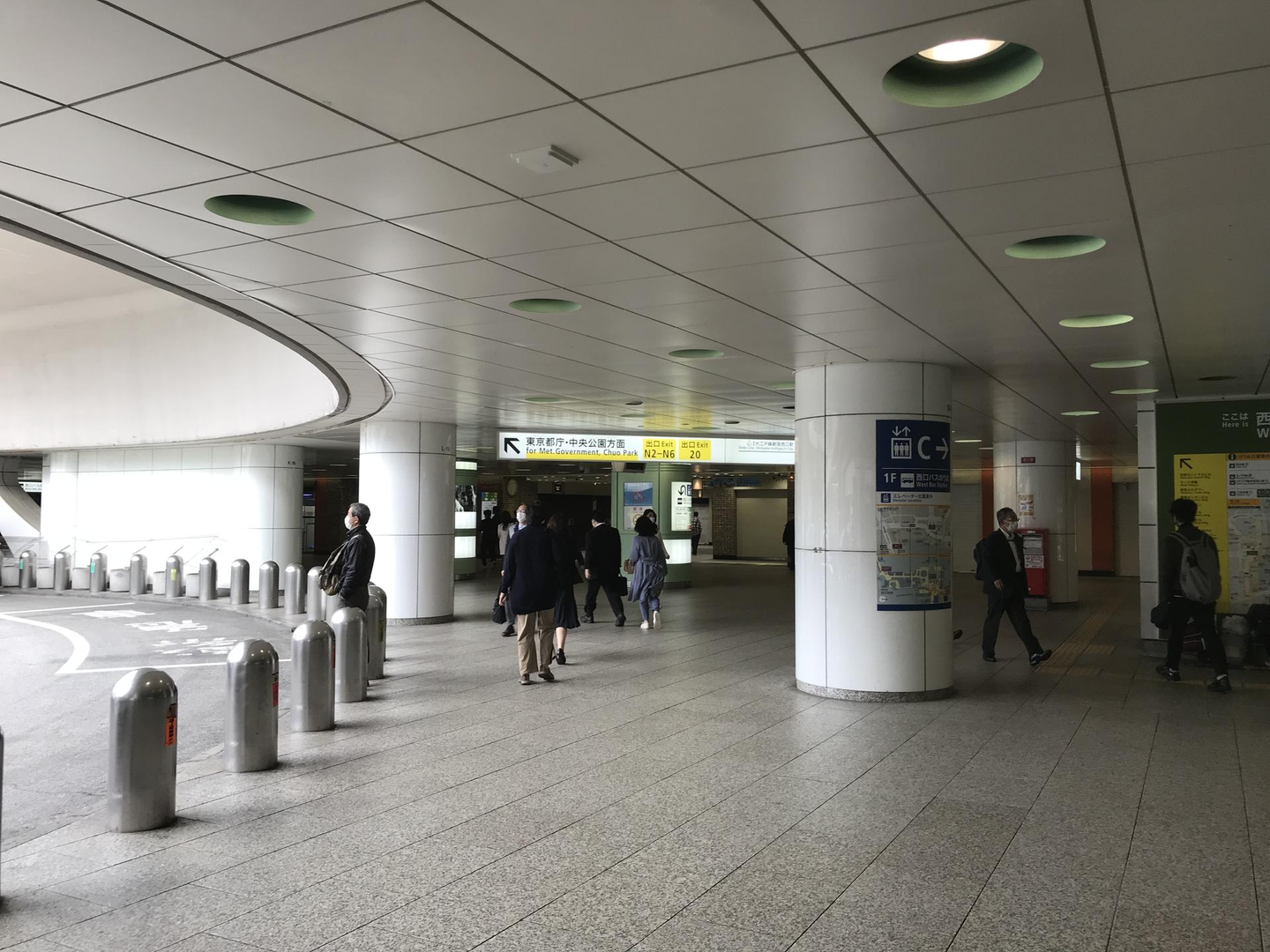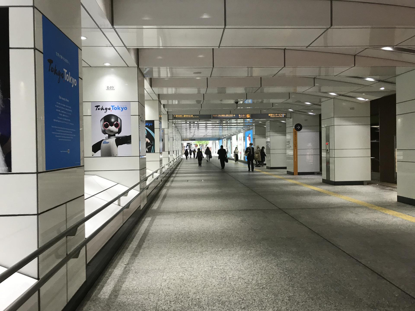 写真左側には歩く歩道がありますが、都庁方面に動くのは8時~10時だけで、