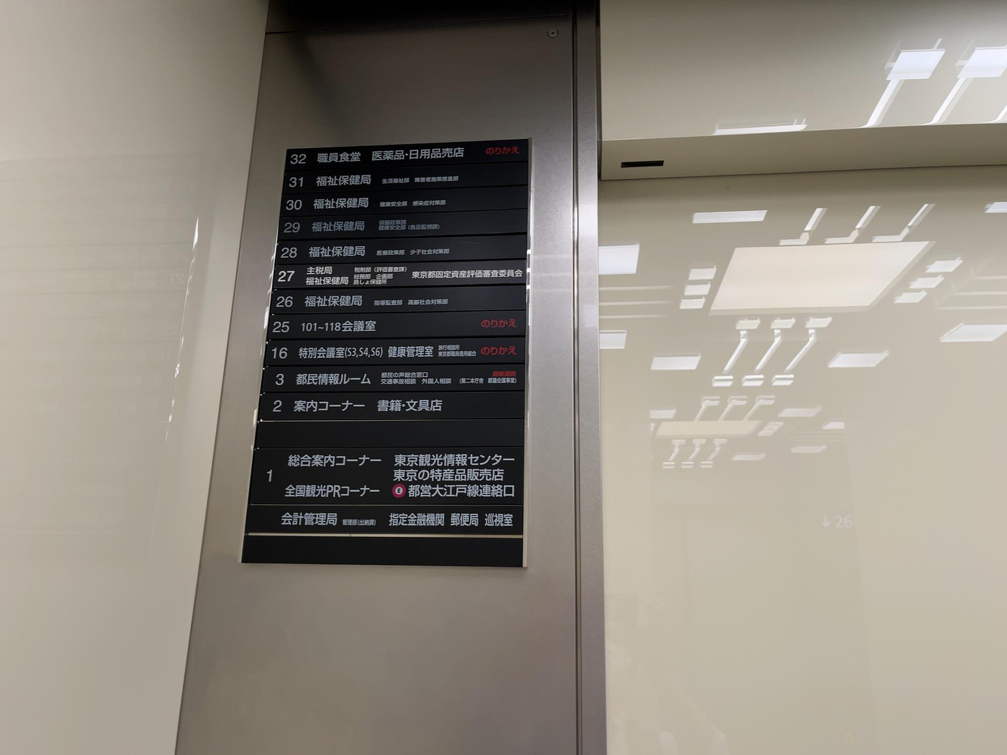 都庁1階または2階のエレベーター付近に端末がありますので、