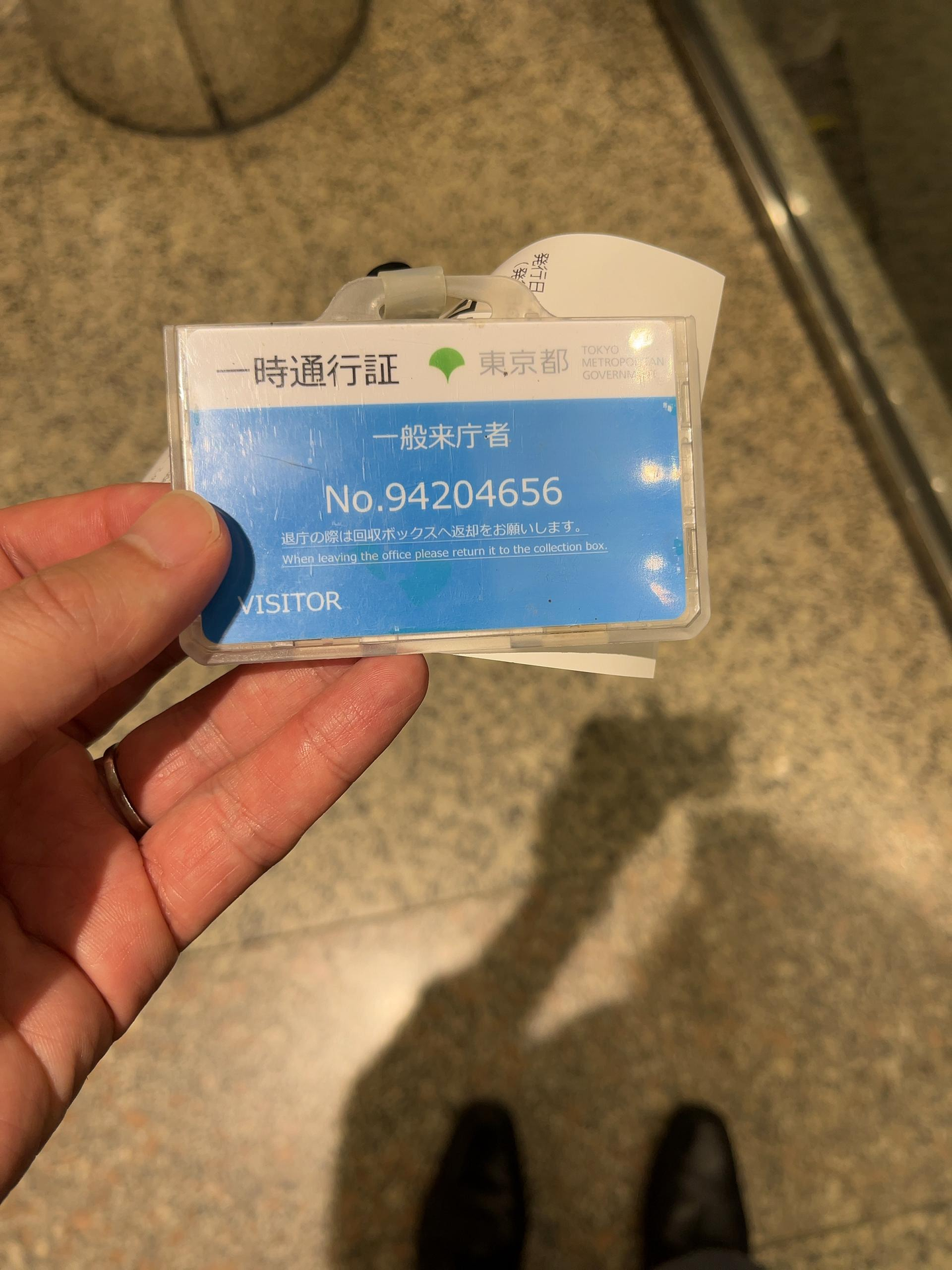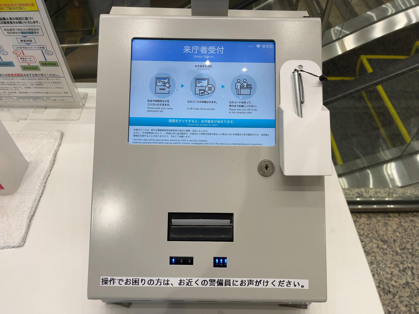 印刷されたQRコードを入庁受付の警備員の方に提示すると、「一時通行証」を受け取れます。