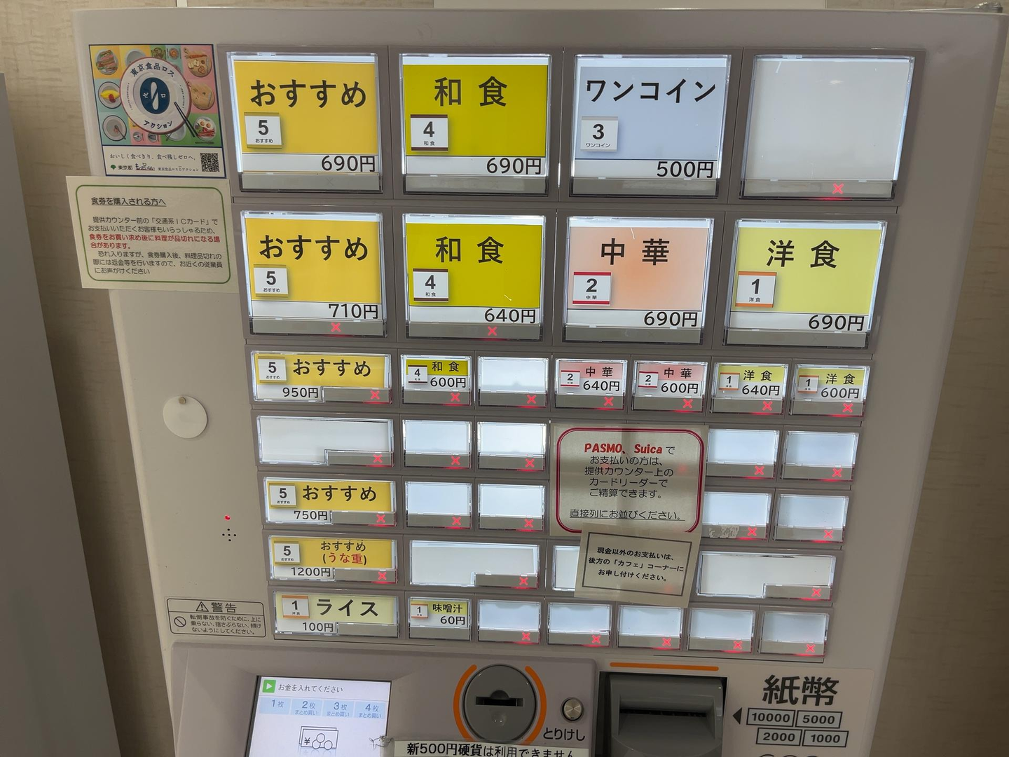 32階を降りて進んでいくと、食堂の入口に券売機が置いてあります。