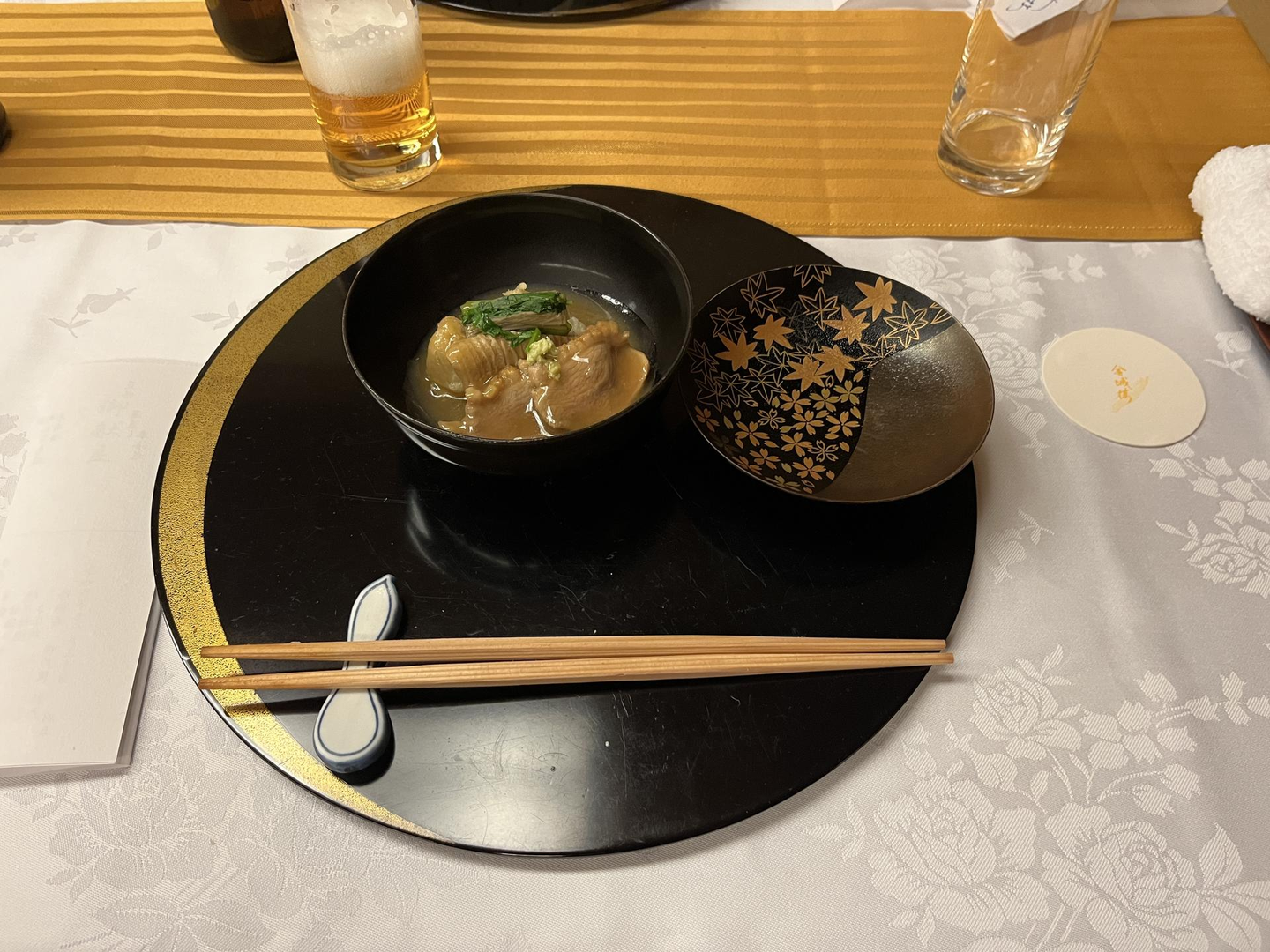 「治部煮(じぶに)」や「はす蒸し」といった伝統の加賀料理やお酒を堪能しました。