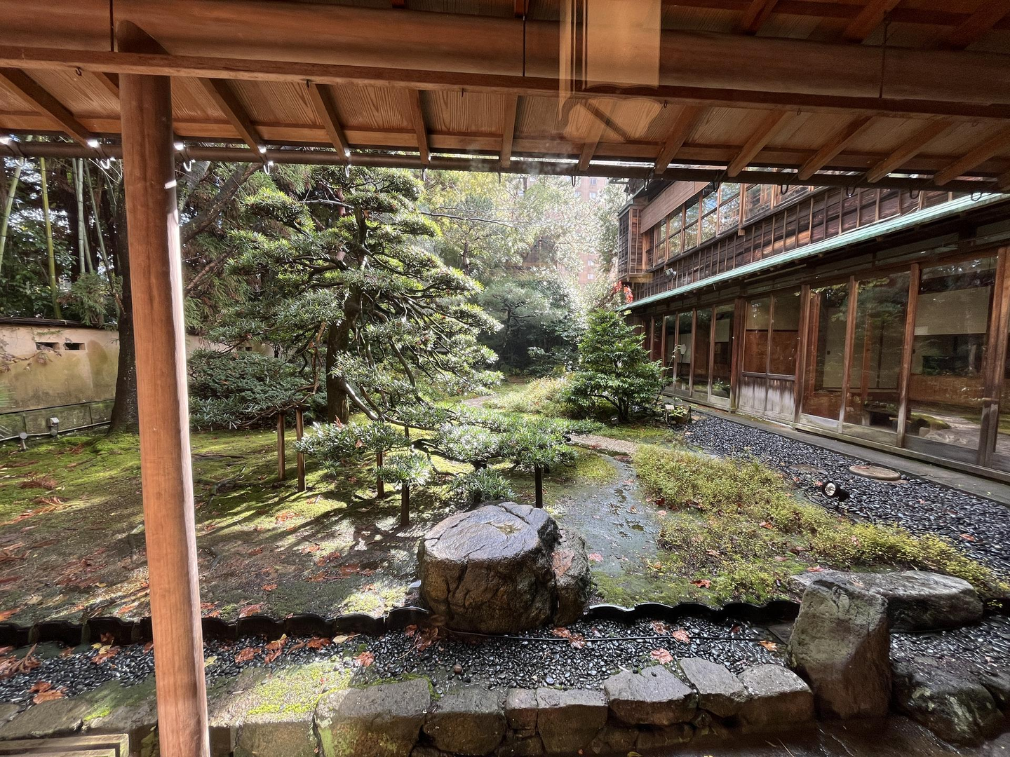 玄関に飾られている屏風や、趣ある庭園、格式ある客室など、日本建築の伝統を感じました。