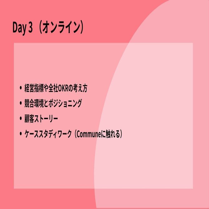 新入社員向けオンボーディングもいよいよ最終日。Day 1 で会社について、Day 2 で事業やプロダクトについて理解。最後はいよいよ最も大切な顧客理解を深める一日です。