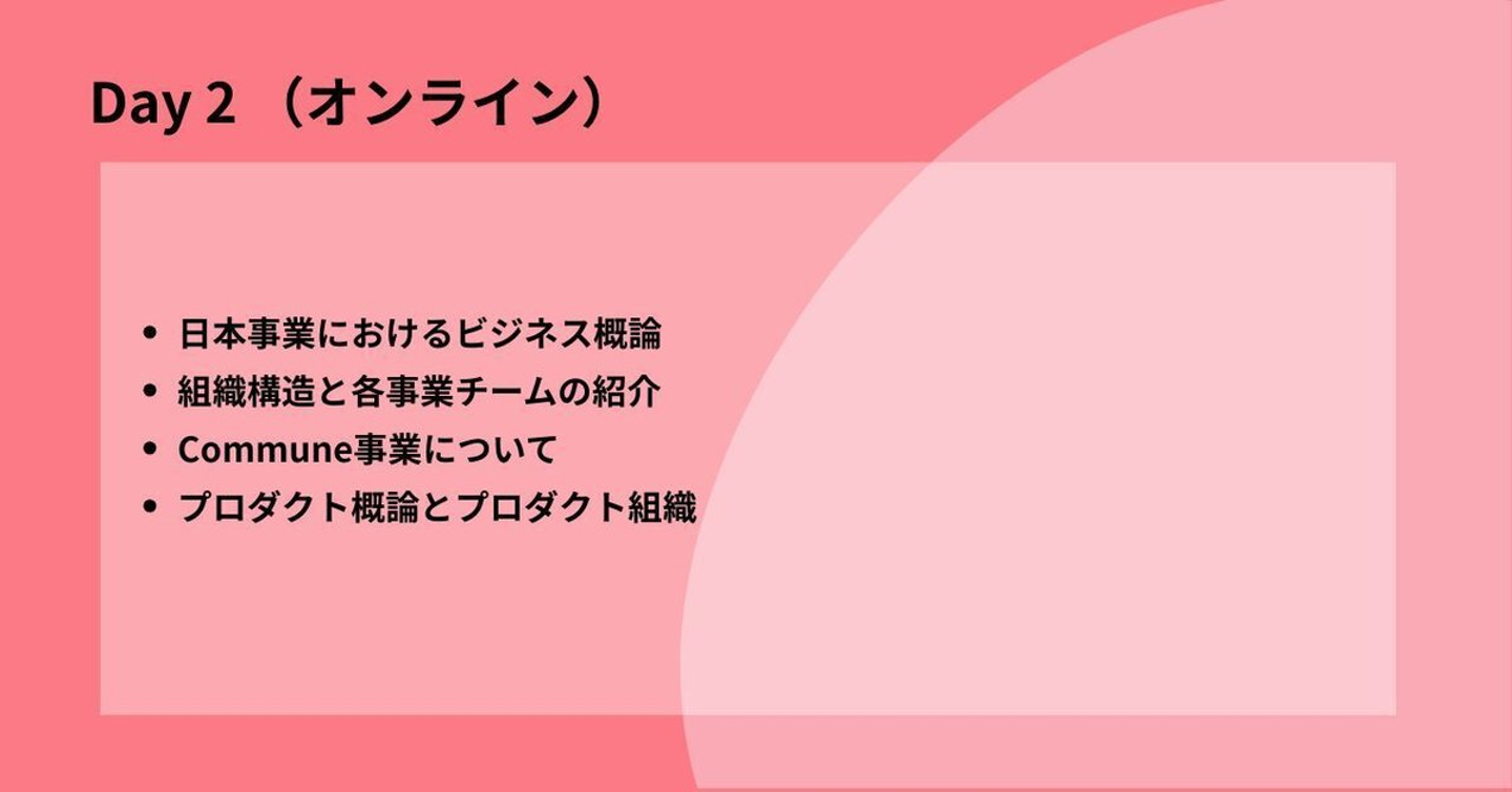 事業と事業に紐づくプロダクトについて学び、理解を深める一日になります。