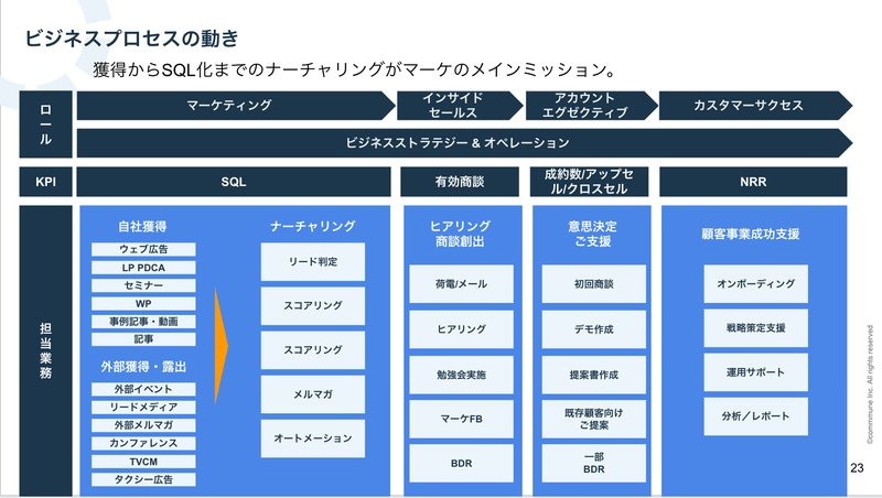 コミューンも現状は必要無いです。コミューンはエンタープライズのお客様が多いので、導入いただくまでに数ヶ月かかることも珍しくありません。そのため、定量的な分析よりもプロセスを見直したほうがはるかに有用です。現状のマーケティング部では、SQLやGASのスキルよりも「THE MODEL」をしっかり理解することのほうが大切です。