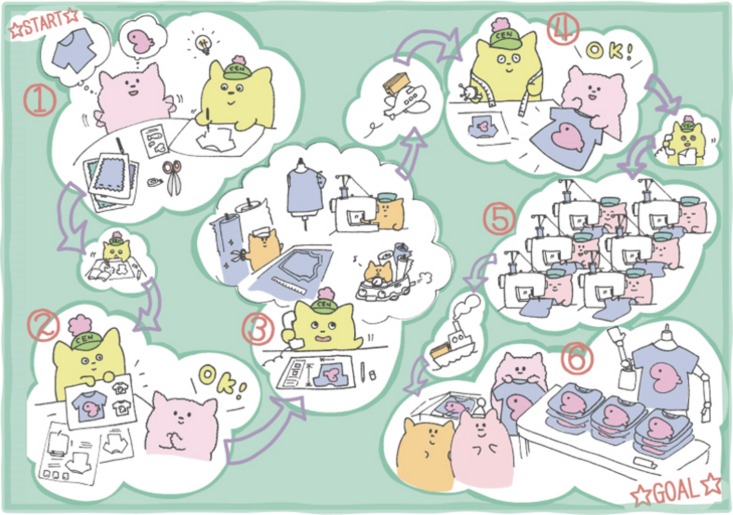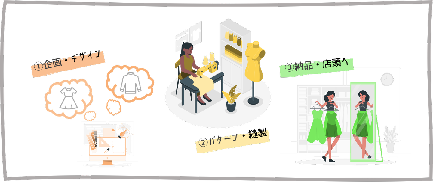 みなさんの着ている洋服が店頭に並ぶまでには、大まかに