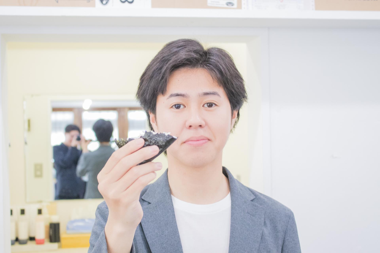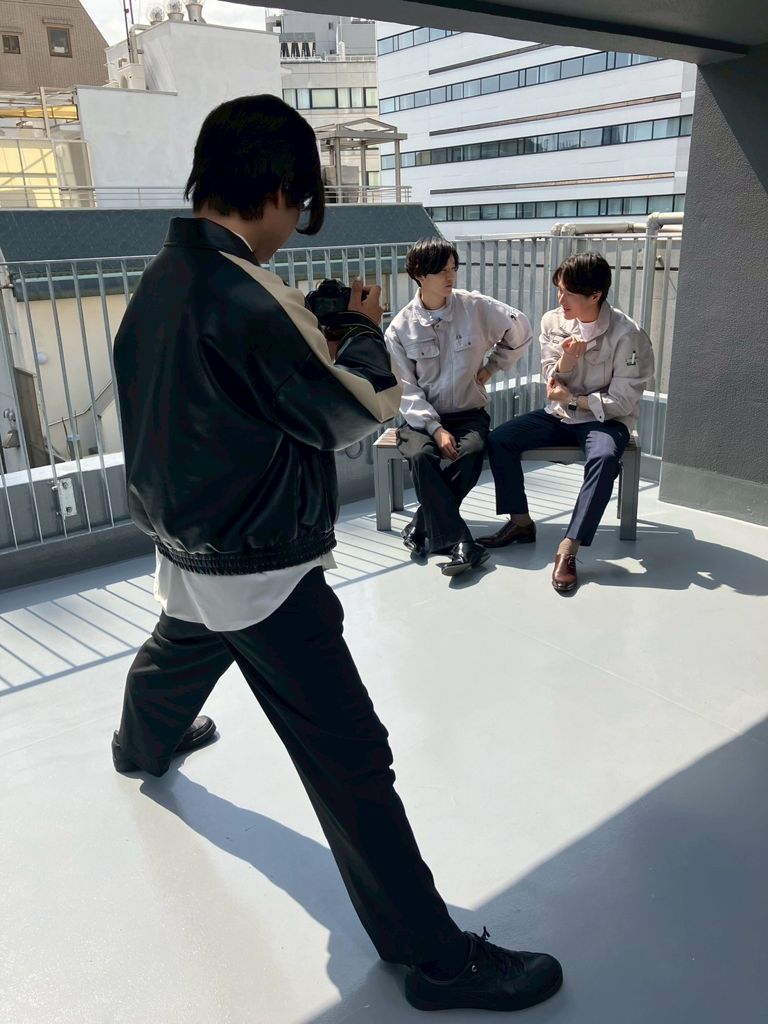 なされるがままシェーディングを施される社長撮影風景撮影の合間には、仲良く話したり、ふざけて写真に映り込むなどオフショットもたくさん。