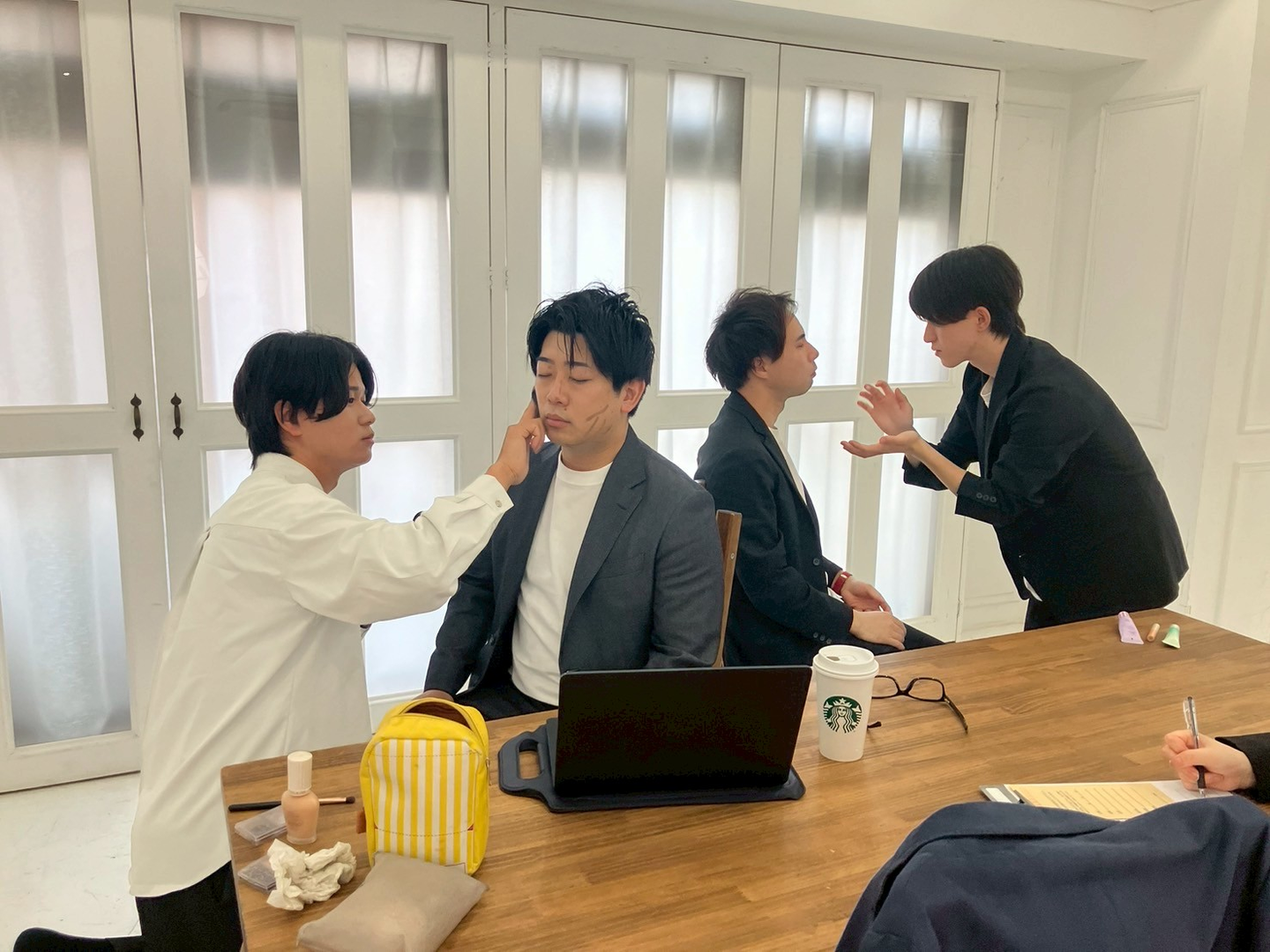 映りを良くするため、男性社員に化粧を施す影の努力も…!