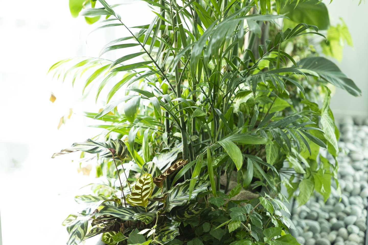私が「いいな」と思っているのは、オフィス内にある観葉植物に造花だけでなく本物の植物もミックスしていること。社内に緑があるのとないのとでは、やはり居心地が全然違いますね。また植物の根元に敷き詰められた丸石もおしゃれで、屋内にいながら庭園にいるような自然を感じることができます。