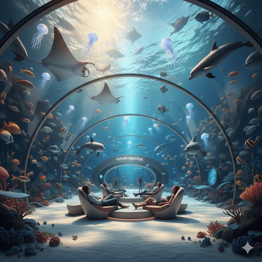 子どもたちがAIを使って描いた「未来の水族館」のサンプル画像