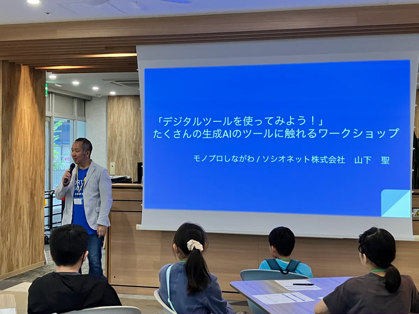 今回のワークショップは、小学4年生から中学3年生までを対象に、画像・動画・音楽・文章といった多様な“生成AIツール”に触れながら、楽しくデジタル表現を学ぶことをテーマにしています。