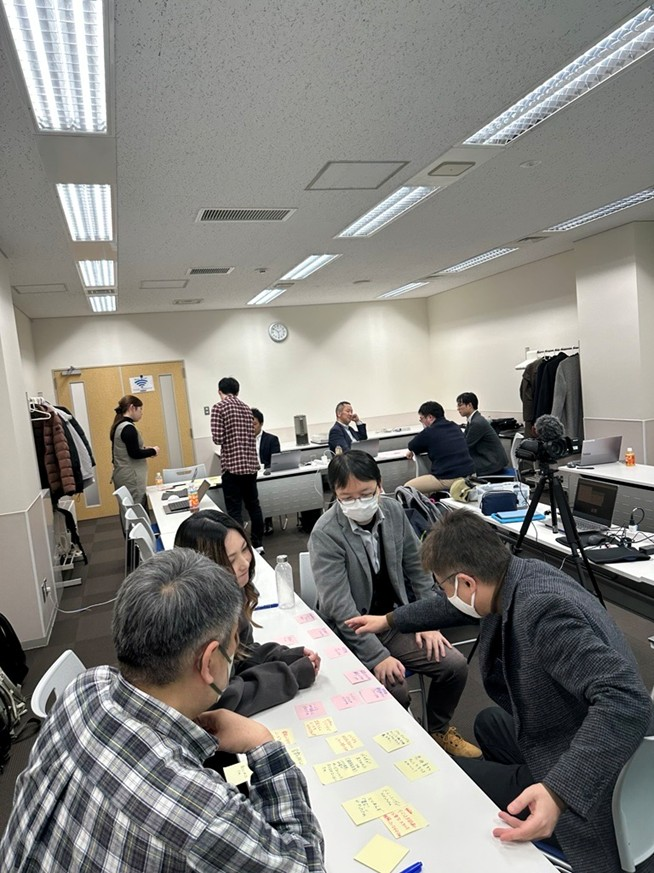 最後は「なぜ」を深掘りをした結果から、特に影響が大きい要因を1つ選ぶところまでワークを行い、前半戦を終了しました。どのグループもテーブルにたくさんのポストイットが並べられているものの、「時間が足りない!」、「まだ分析途中!」といった声が聞こえてきました。特に4~5段階目の分析で、この分析であっているのだろうかという、「分析の正当性に対する迷い」などの声も聞こえ、要因の特定に苦戦した様子が伺えました。
