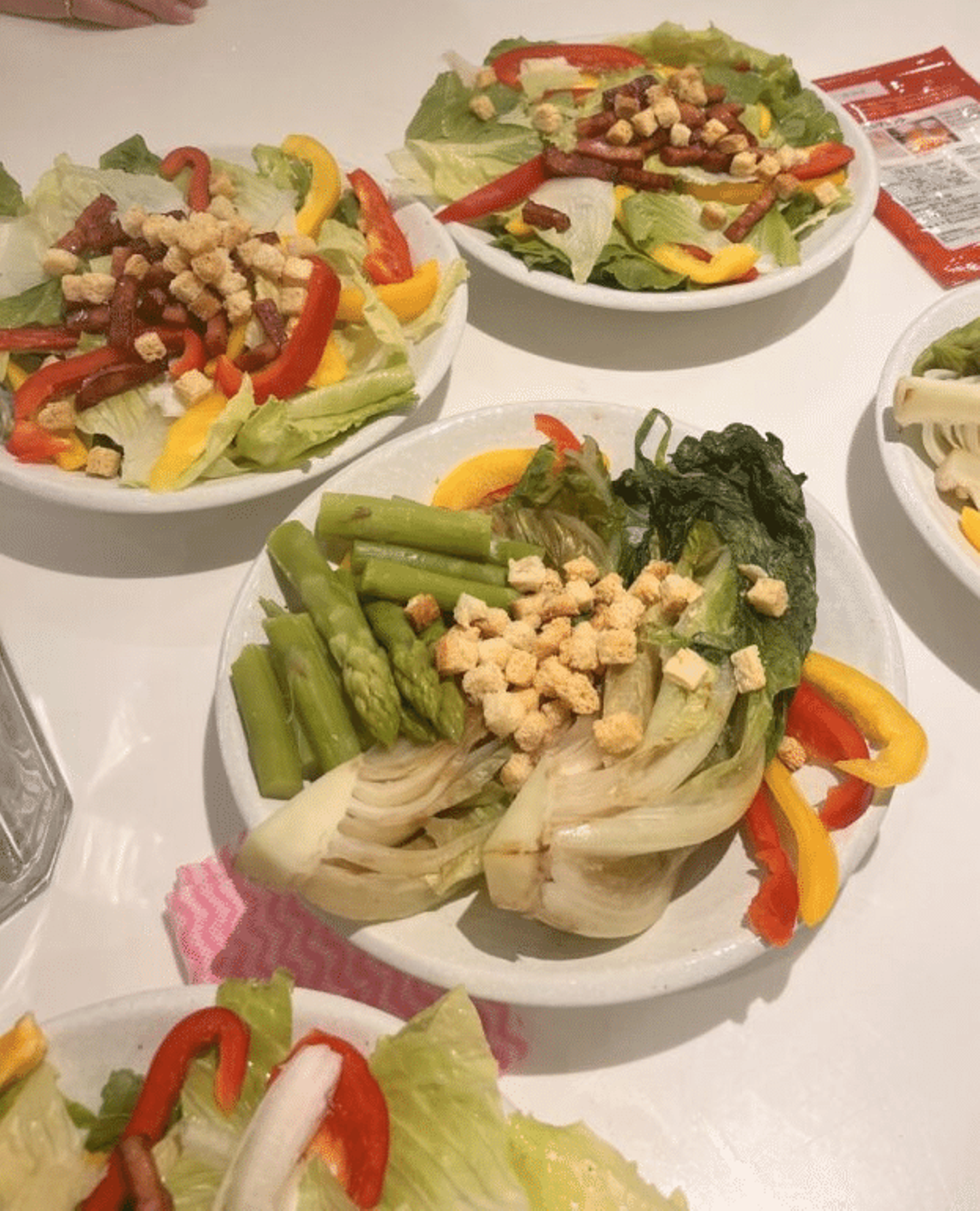 担当料理は『サラダ』。サラダの王道シーザーサラダを作り上げました!サラダの上には、カリカリに焼いた香ばしいベーコン、そしてなんと一人に一個ずつ温玉付きという豪華仕様でした!