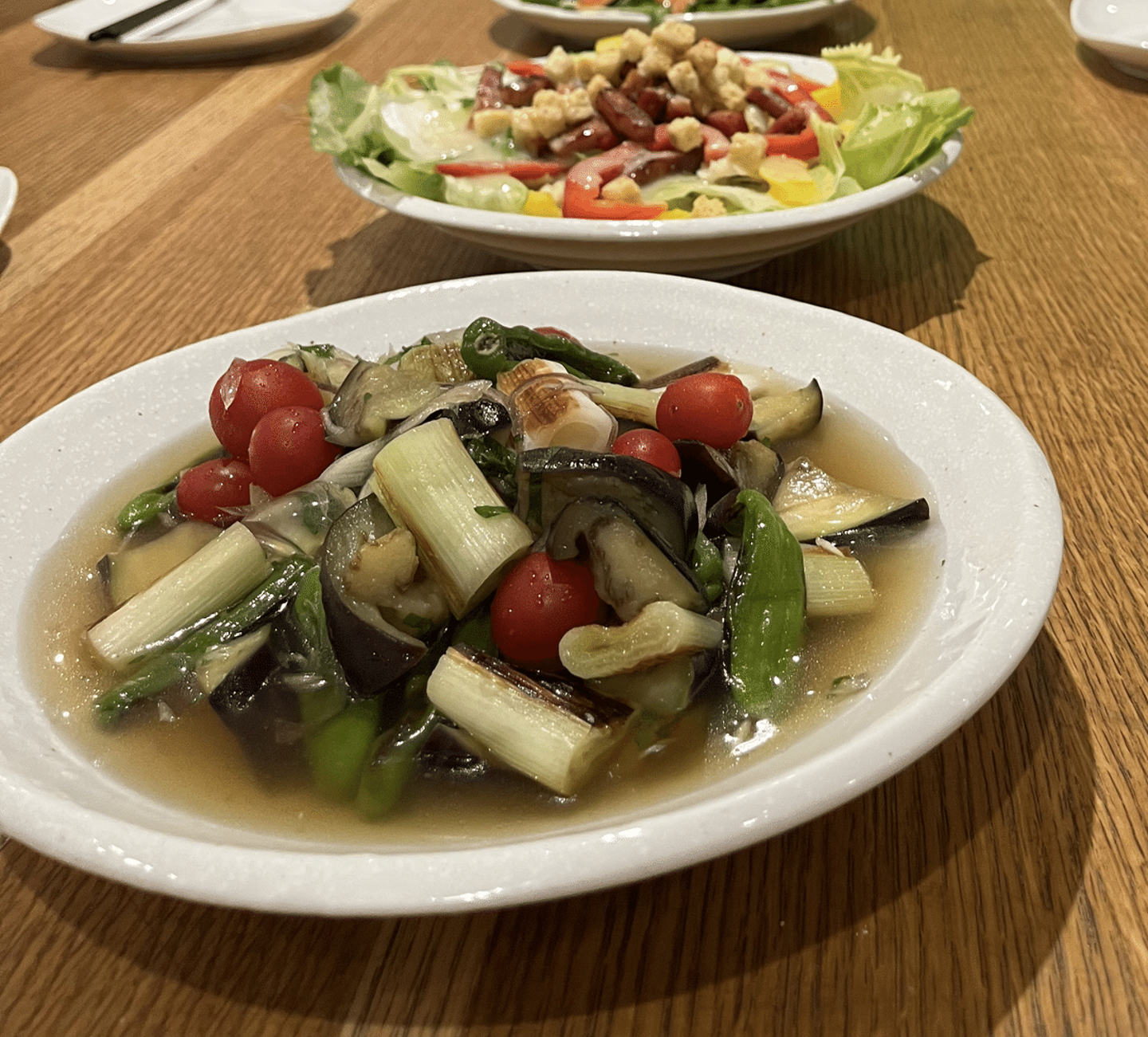 いよいよ最後の紹介となります!こちらのチームの担当料理は『副菜』。夏野菜たっぷりの揚げびたしを作り上げました!ナスやトマト、ネギなどの野菜にしっかりと味が染み込んでいて、短時間で作ったとは思えない仕上がりに。暑い季節にぴったりな、さっぱりとした一品となりました。