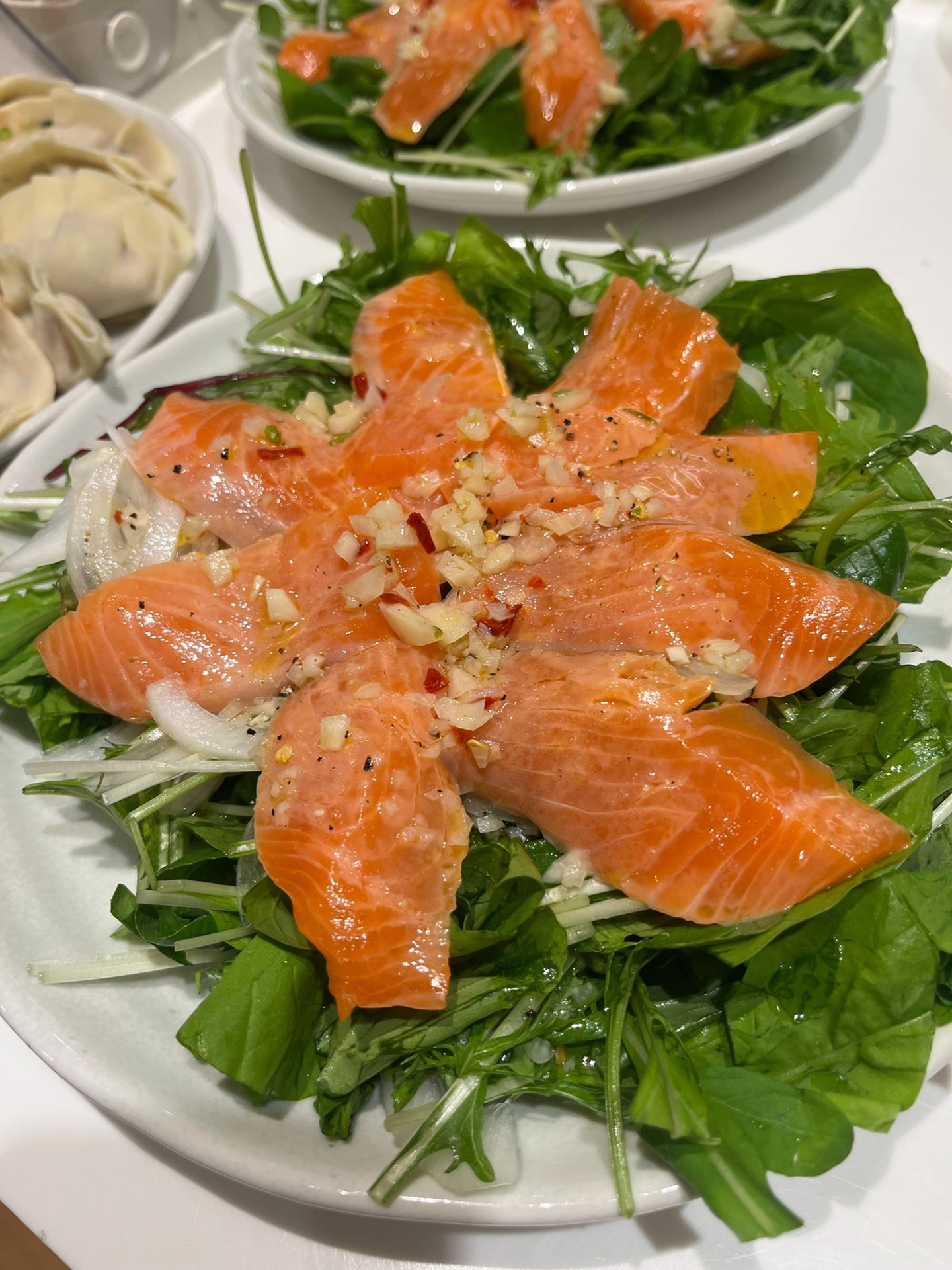 担当料理は『副菜』。見た目にも美しい、サーモンのカルパッチョが完成。