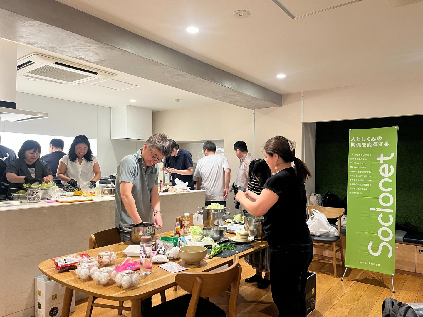 普段の業務とは違う表情やスキルが見られ、「料理得意だったんですね!」といった社員同士の新たな発見や新しい一面が見られたりと、終始リラックスした雰囲気に包まれ、笑顔と談笑が絶えない温かな時間となりました。