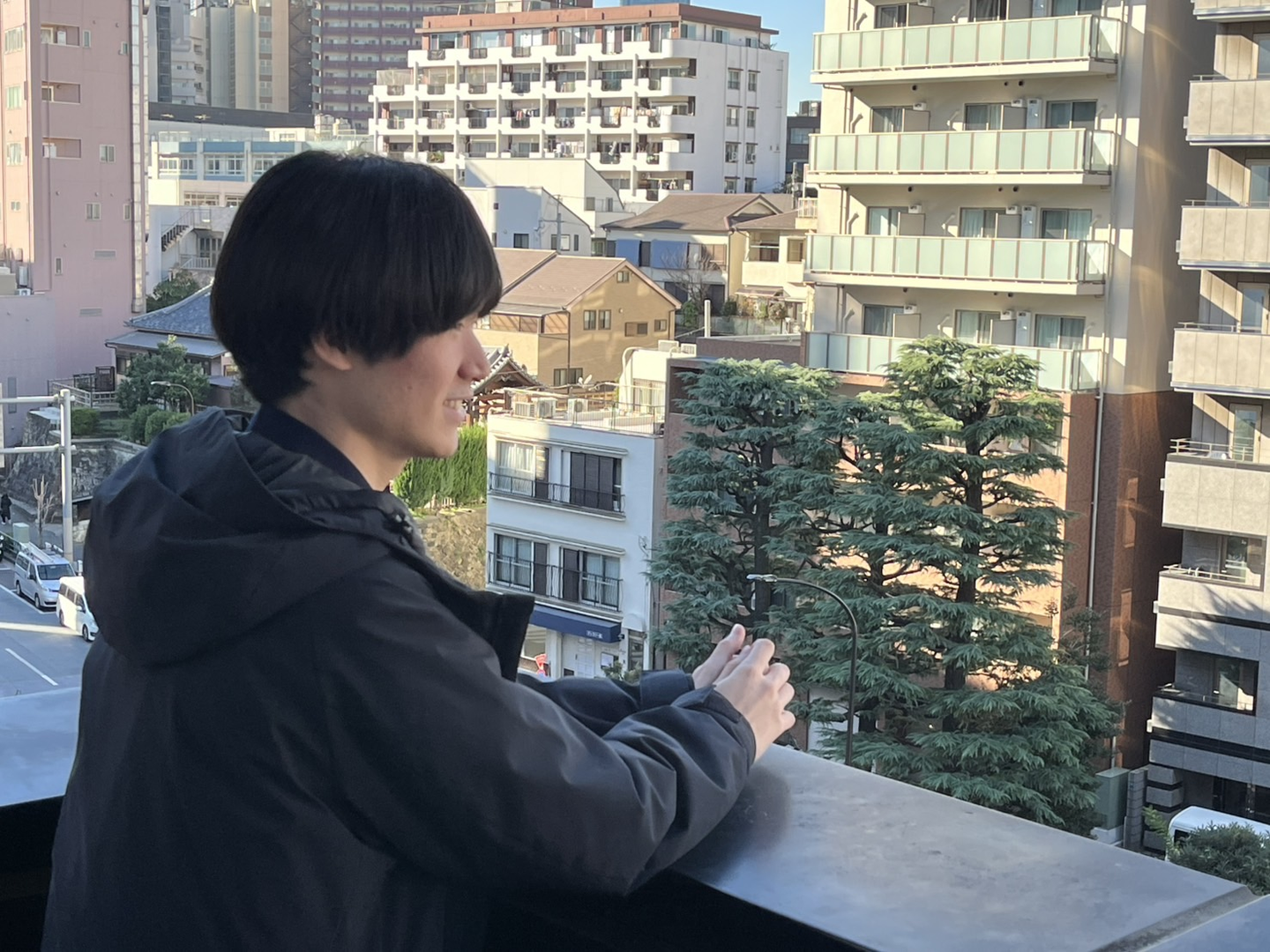 ベランダはメンバーの憩いの場。