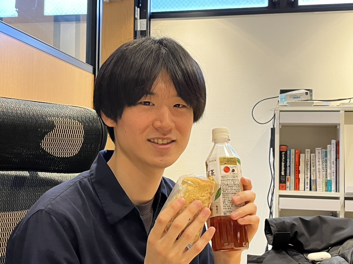 普段はおっとりとした雰囲気を身にまとい、ゆっくりとした口調でお話してくれた若きホープ、こうしさん。レモンジャム入りのシフォンケーキがデスクにさりげなく置いてあり、「これが集中の秘訣です」と照れ笑い。彼の温かみがある人柄が見えるひとコマでした。