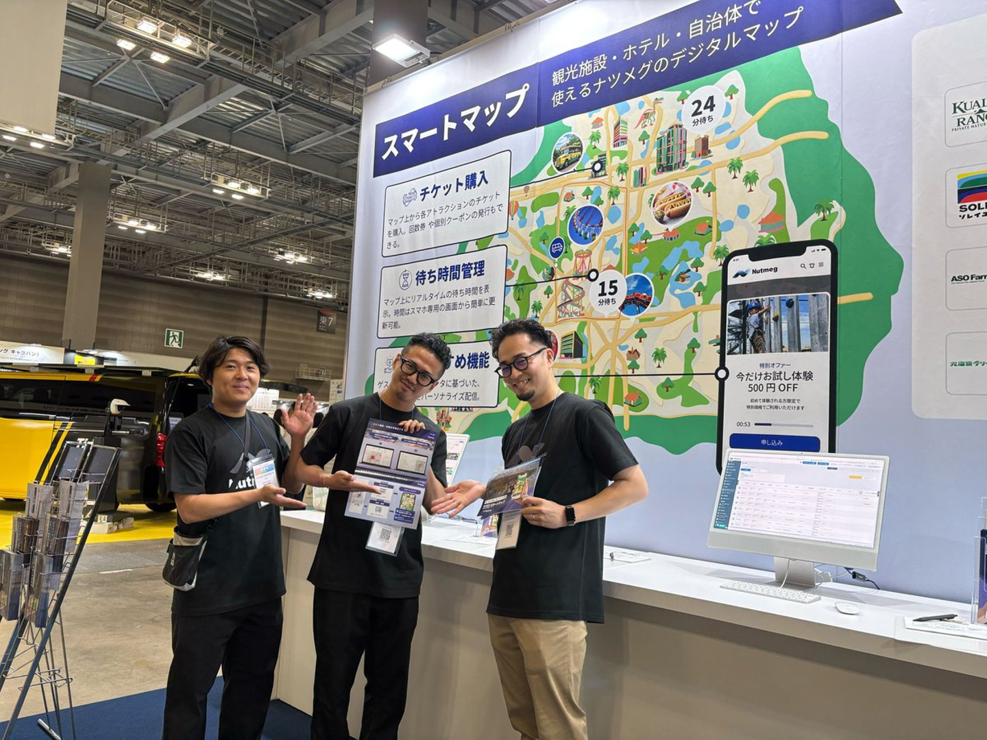 このイベントは九州最大級の業務支援に特化した商談展示会です。九州圏の官公庁・自治体・企業が抱える「今と未来」の課題を解決する、最新情報や革新的なソリューションが一堂に会する場として開催されます。Nutmegはその中の「観光業務支援EXPO」に出展しました。