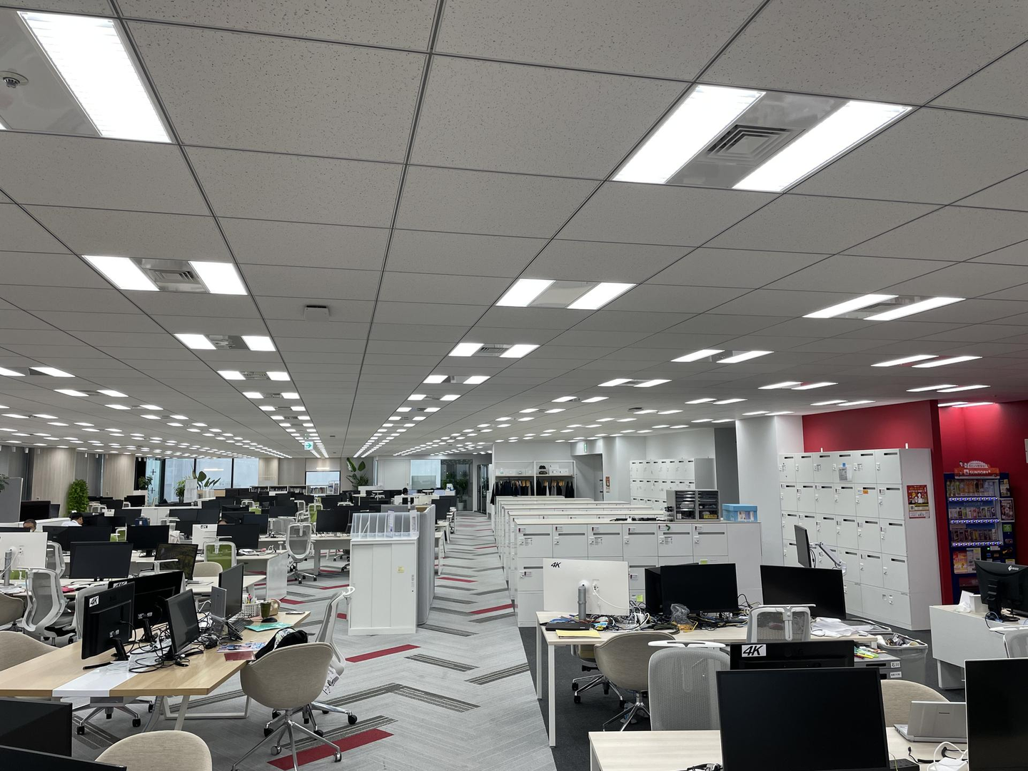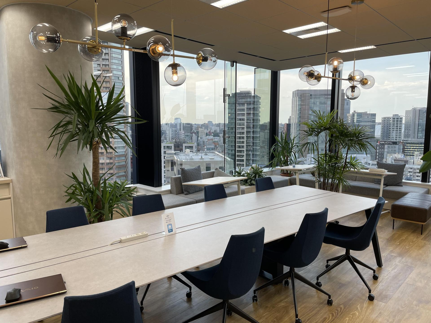 解放感あるスペースで仕事に集中できます。大型モニターを完備しているため、MTG以外は、ノートパソコンをモニターにつないで大画面で仕事ができます。