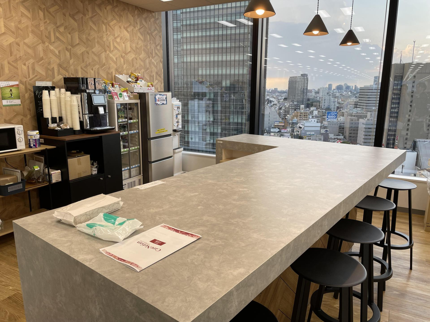 高層階にあるため、休憩スペースはブラインドを開けて開放的な空間で食事をとったりできます。