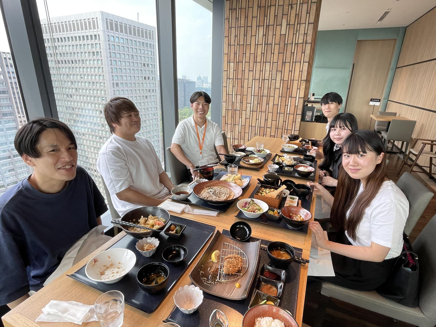 景色の良い場所でランチ会兼座談会を実施いたしました。お仕事内容や会社の雰囲気、プライベートのこと等たくさんお話できました!入社前の不安が少しでもなくなってたら良いな!