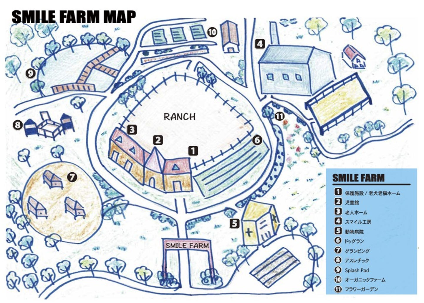 将来的には、”スマイルファーム”の建設を考えています。大きい土地に、牧場、農地、グループホーム、動物の保護施設などを建設し、まずはグループホームの食事を自給自足することを目指します。将来的には、加工工場を建設し国内に販売をしていく。障がい者の雇用や周辺地域の方の雇用を生み出し、しっかりとビジネス化していくことを目指し、動物の保護施設の運営を安定させていきたいです。
