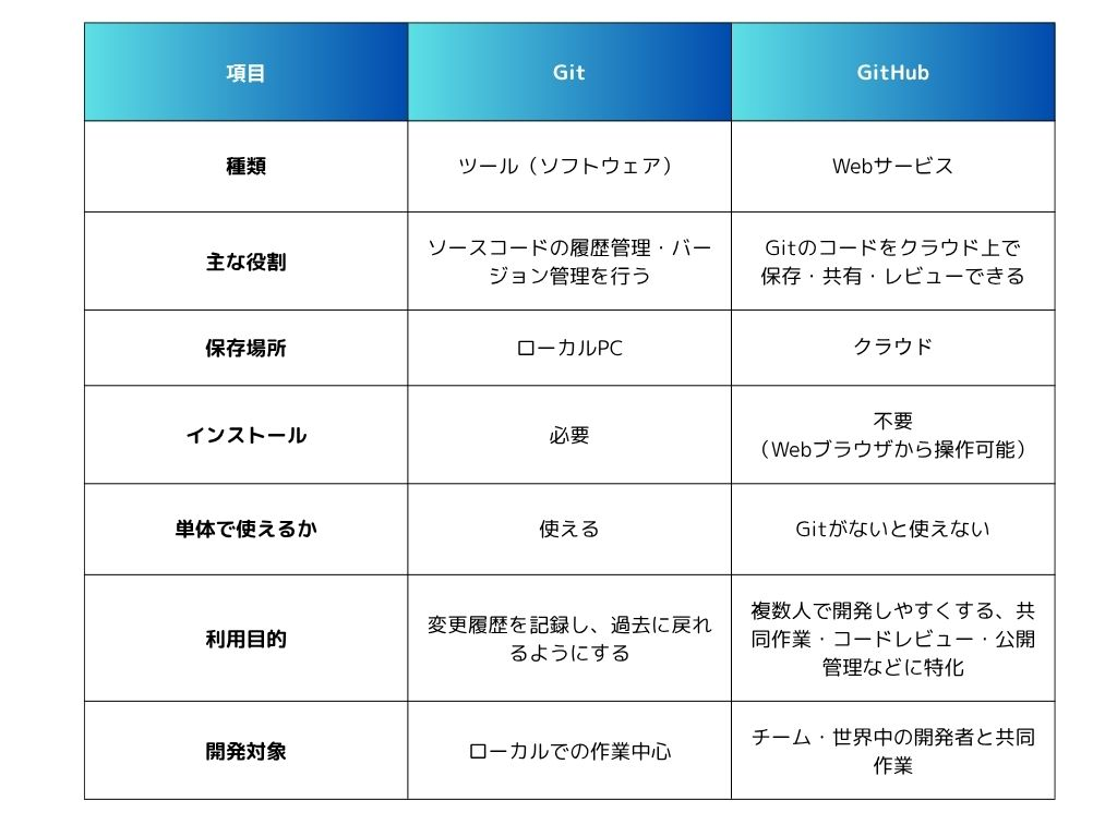 Gitはローカル(自分のパソコン)で使うツールですが、GitHubはGitの機能をクラウドで使える、いわば共有の保管庫でSNS的な場所でもあります。