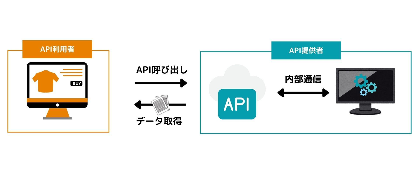 ソフトウェア同士が安全かつ決められたルールでデータや機能をやりとりする仕組みです。