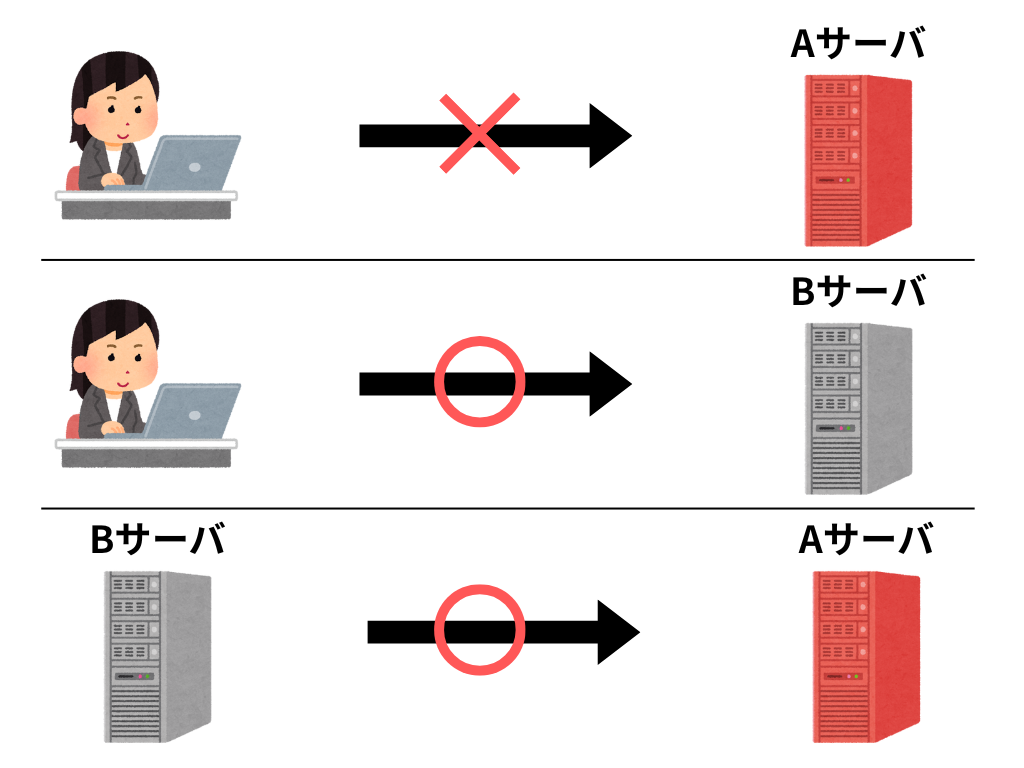 あなたのPCで、Aサーバにアクセスしたいとします。しかし、AサーバはBサーバしか接続できないようになっているため、あなたのPCではAサーバに接続することはできません。