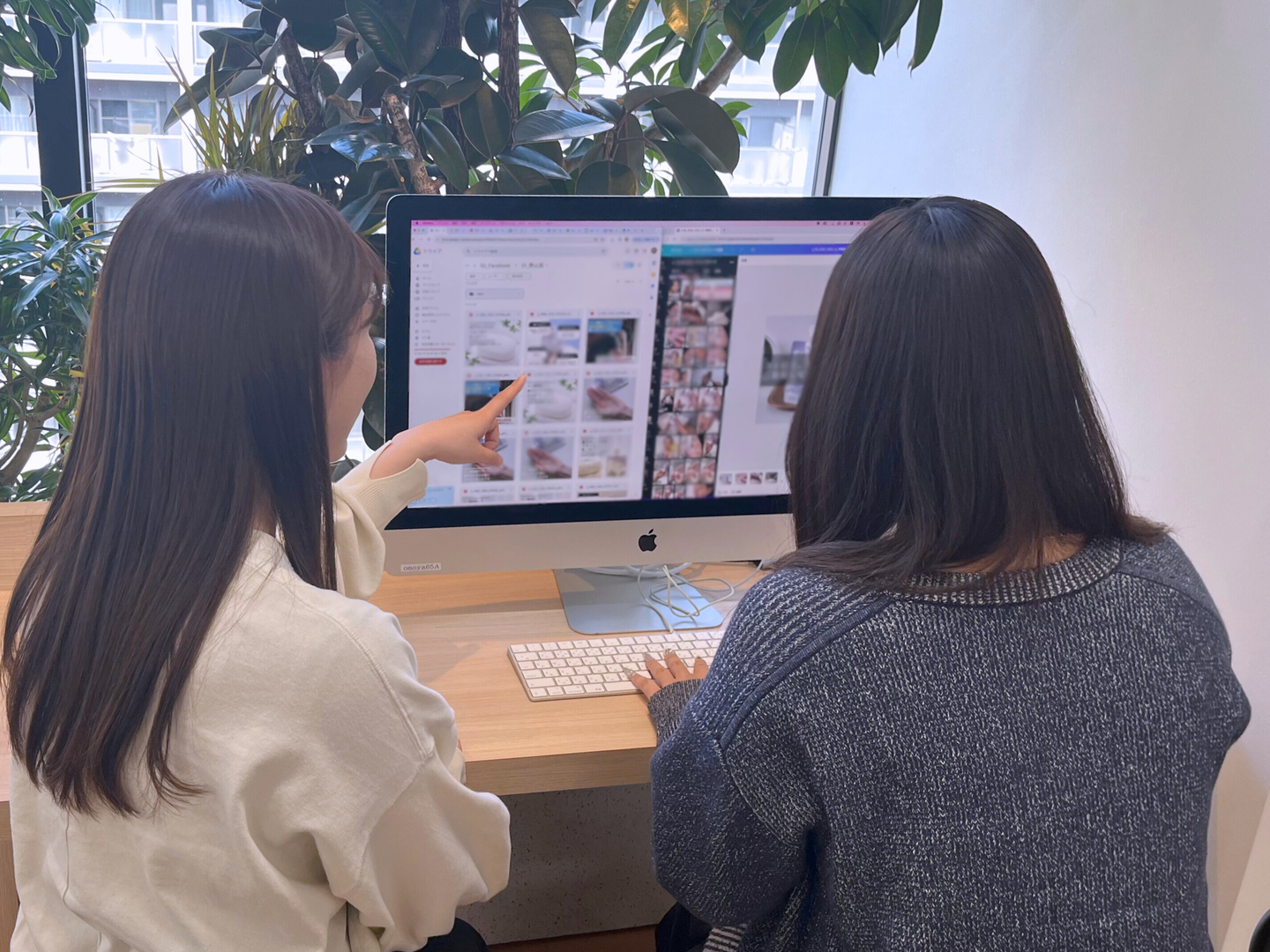 社員の皆さん話す中で「何がしたい?」と聞いてくれて、寄り添ってくれます!「何がしたい?」と聞いてもらうことで、自分の中での「あれがしてみたい!」「これがしたい!」がはっきりして、そこを実際に任せてもらえることが本当に嬉しいです。実際に、入社したての頃は記事を書いてみたいと思っていたんですけど、最近「広告のリールを1から作れるようになりたいです!」と話してみると、そこを達成するために協力してもらったり、そこにつながる業務を任せてもらったりしています!
