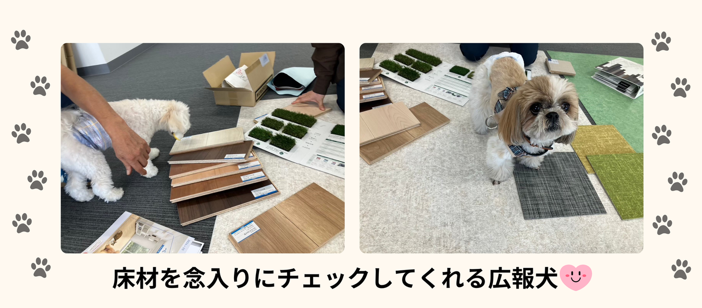 長年目指してきた、愛犬と共に出社する会社がここに誕生。オフィス内の家具などは、わんちゃんが噛んでも怪我をしないようにこだわっており、床は広報犬(社員の愛犬)たちが実際に使用する床材をチェックして滑りにくくないか素材の確認を行なっています!(^-^)