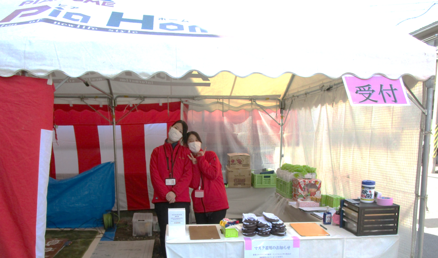 元気な挨拶と笑顔でお出迎えします。実は、見学会全体の司令塔となるのも受付です!